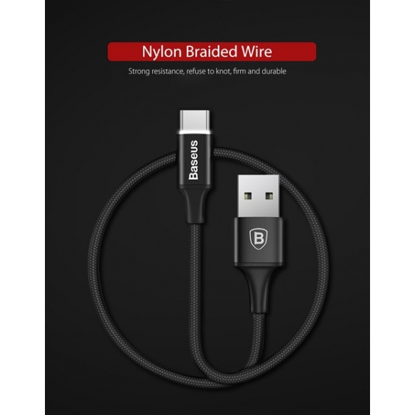 کابل Type C به USB بیسوس Rapid Series یک کابل با رشته های سیمی بادوام بوده و به صورت کنفی طراحی شده است که به سبب این سه از مقاومت بالایی در برابر گره خوردن،در هم پیچیدن و پاره شدن برخوردار است.طول این کابل 25 سانتی متر بوده و مناسب برای پاوربانک می باشد.کابل بیسوس Baseus Rapid Series تایپ سی برای اتصال دو درگاه تایپ سی و USB بکار می رود.این کابل برای شارژ و انتقال پر سرعت اطلاعات برای دستگاه هایی استفاده می شود که دارای درگاه Type Cمی باشند(محصولاتی از جمله آیفون های 2016،Apple Macbook،Nokia N1،Nexus 5x, Nexus6P, One Plus2, Xiaomi Mi5, Lumia 950, Lumia 950 Xl و گوشی های موبایل جدید سال 2017). این کابل توسط شرکت بیسوس با فناوری پر سرعت Fast Charging و Quick Transmission ساخته شده است و قادر است تا 2 آمپر شدت جریان را از خود عبور دهد.سوکت های کروم کاری شده فلزی بکاررفته سبب افزایش مقاومت این کابل و زیبایی آن شده است.
